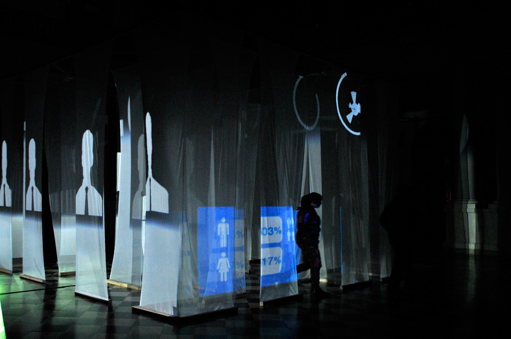 Interactive Installation that integrates elements of animation in real-time and video mapping. The audio (which is heard in the video) of the work was transmitted via radio frequency so that visitors could hear it from their cell phones by tuning a specific dial and thus go through the labyrinth of projections. The piece was developed entirely with modul8 and mad mapper. The audio design was done by Ezequiel Carcamo and Juan Andrés Carcamo.
